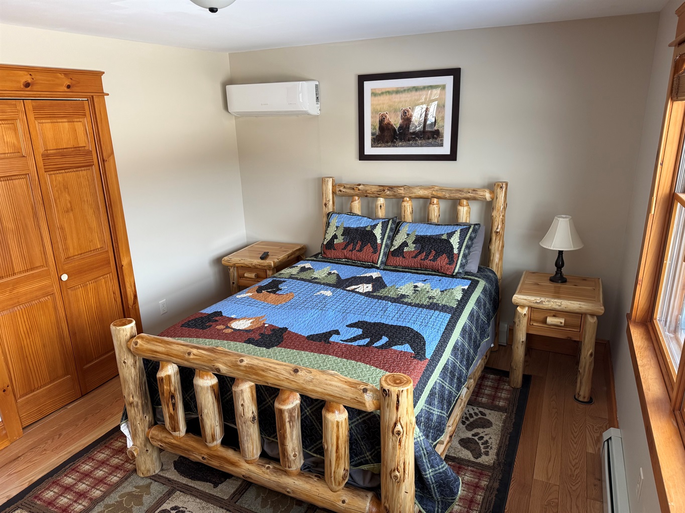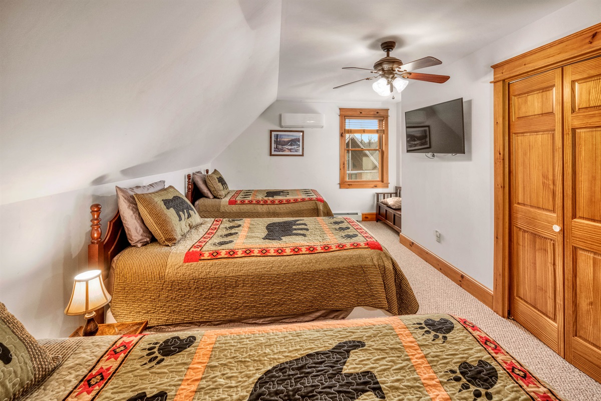 The house is located on the river, has a firepit, and is great for families and couples. The upstairs has 3 bedrooms 2 1/2 baths - 2 with queen beds and one with 3 Twins. If the In Law unit "Bear Den" is rented (additional cost per night depending on the time of year and an additional $50 cleaning fee) - add an additional queen bed and a pull out leather queen sofa and full bath making the house a 4 bedrooms 3 1/2 baths. The "Bear Den" is a perfect option for families and couples as it is a true in law unit which is NOT included in the upstair rental. It has a bedroom with a queen bed, kitchen, living room, pull out queen leather sofa couch, which sleeps 2, walk out patio, and connects to the upstairs unit. If not rented it is locked off. We NEVER rent out the house to separate groups. The "Bear Den" is a separate unit with its own entrance and has a staircase connecting to the upstair unit. There is Air conditioning in the "Bear Den" but is it rarely needed. The snow mobile trail is across the street and it is a 7-8 min drive to Bretton Woods and a 14 min drive to Cannon.